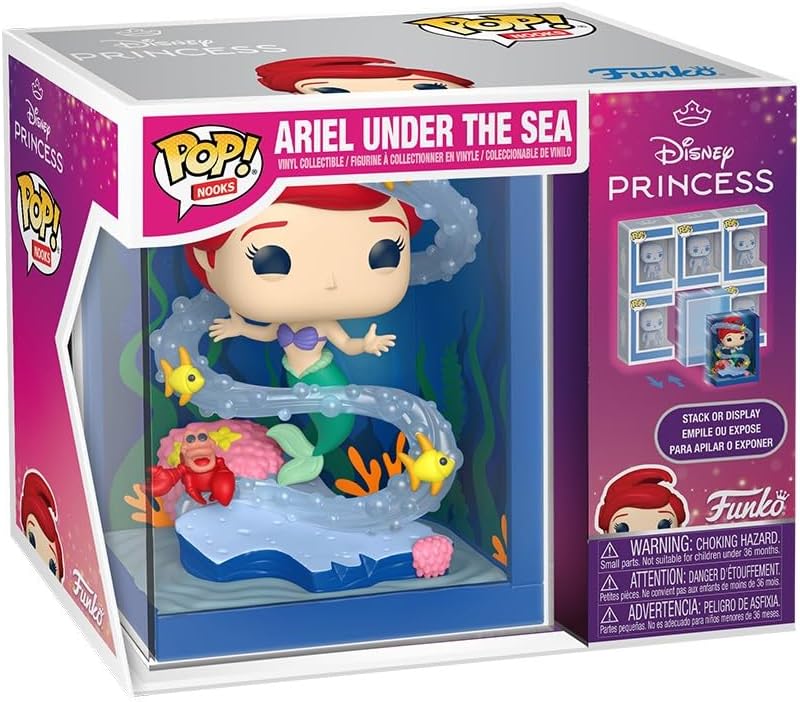 Shown suspended underwater in a vortex of bubbles along with her favorite fishy friends. The Little Mermaid Nooks from Funko will be a popular display item.